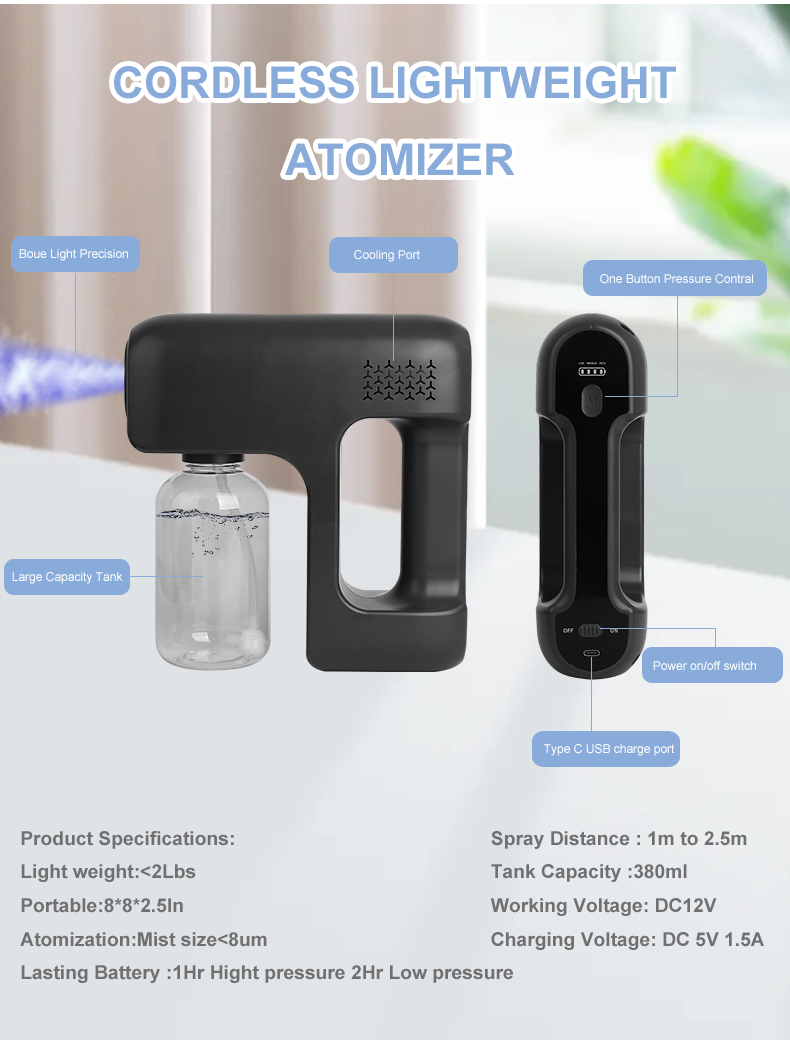 Electric Wireless Disinfection Sprayer Handheld Portable USB Rechargeable Nano Atomizer Home Disinfection Steam Spray Gun