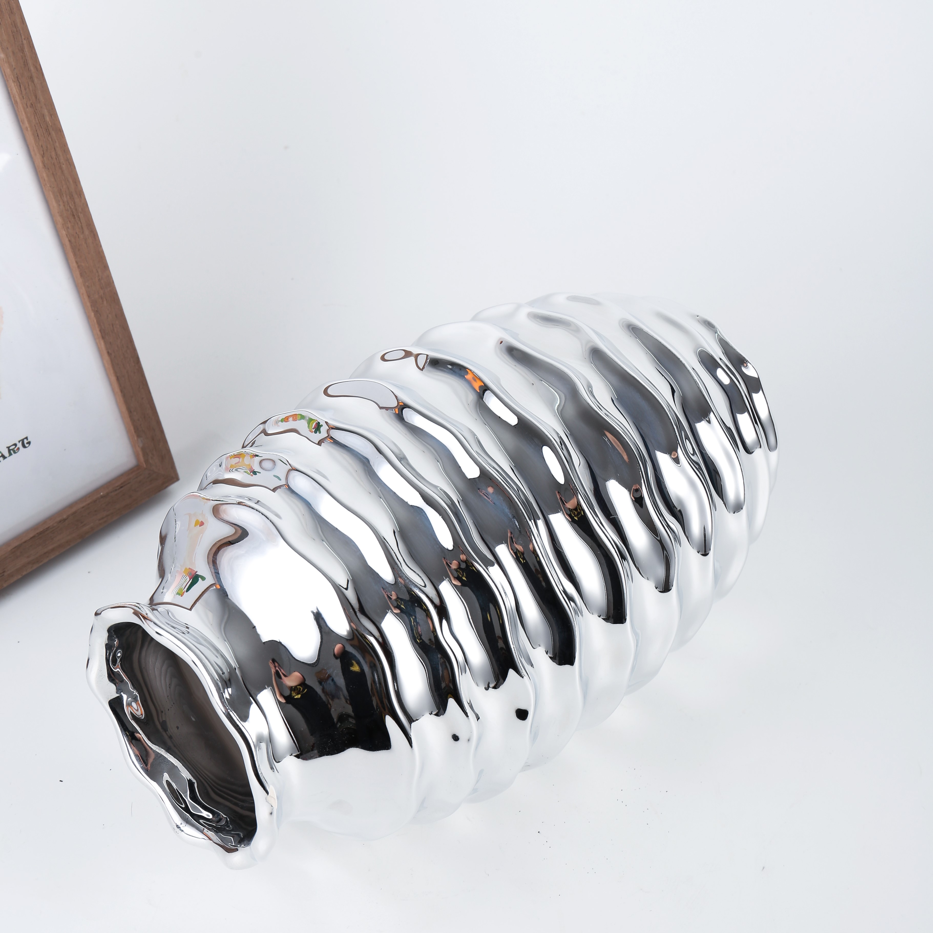 Wedding Party Home Decor Honeycomb Design Decorative Table Desktop Silver Plated Ceramic Vases