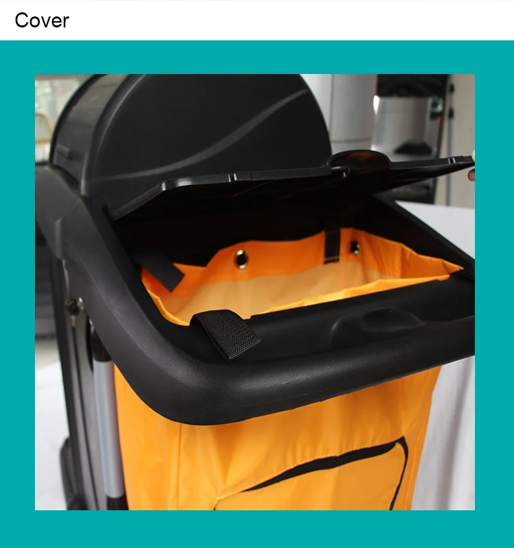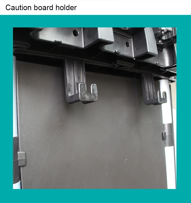 *Strong Hooks and holders around the top shelf for hanging or holding caution board or other cleaning tools.