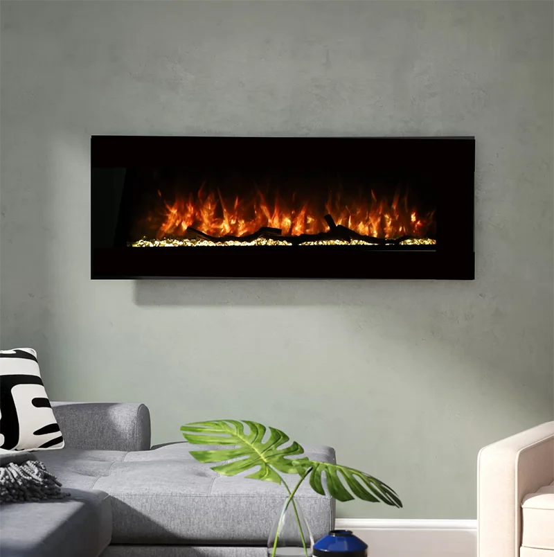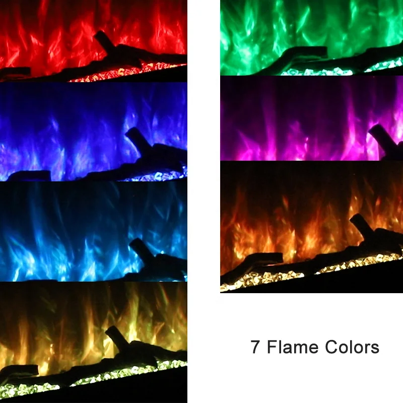 Chimney free wall mounted electric fireplace give you a polished look,you could easily hanging this electric fireplace on the wall or recess it directly into the wall. With the remote control, you could adjust the flame intensity, flame color, temperature, and setup the timer at your wish.