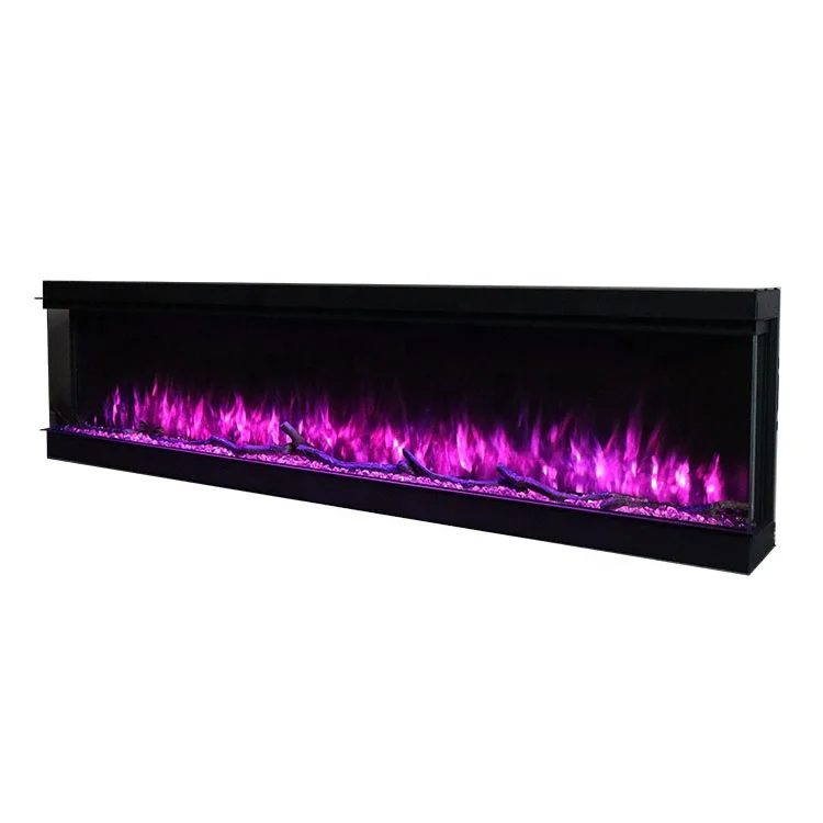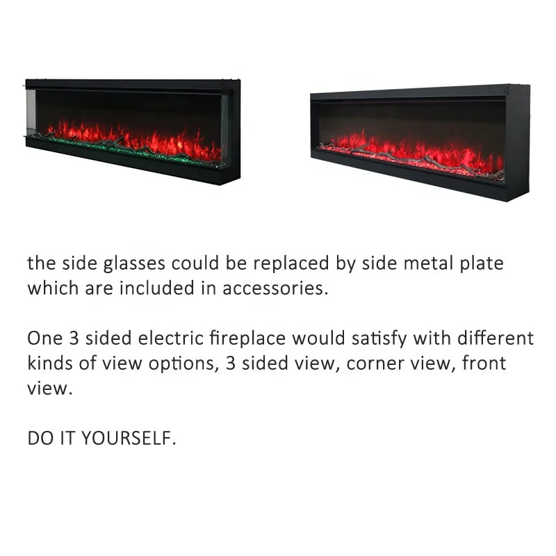 Built-in electric fireplace allows to enjoy relaxing flames in front angle. The electric fireplace is zero venting and large flame display.Frankly speaking, traditional electric fires mostly used a 1D flame effect, with the rear of the fuel bed lit up by artificial embers,but our three sided electric fireplace adopt the 3D LED flame technology, show up the more realistic flames.