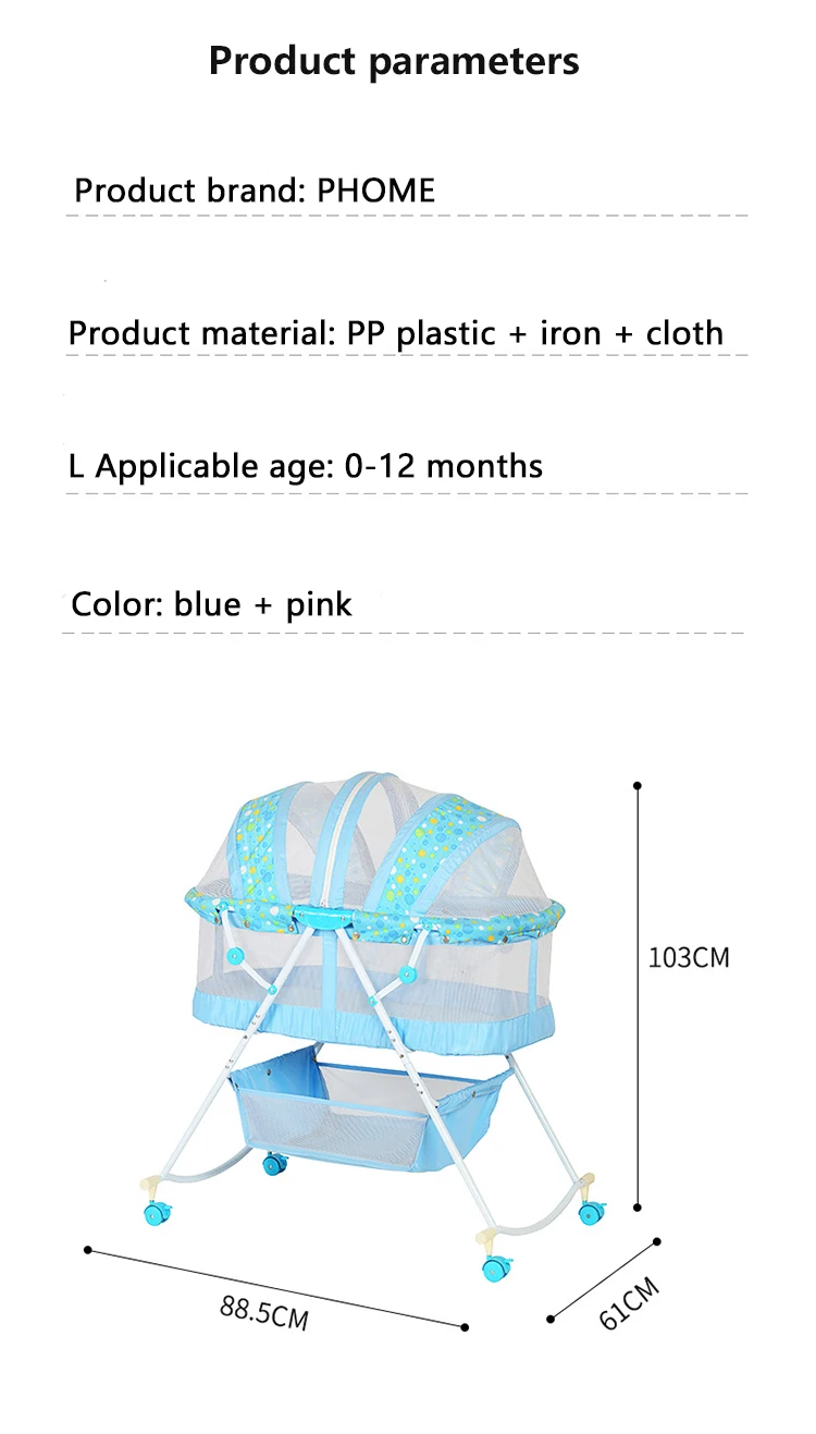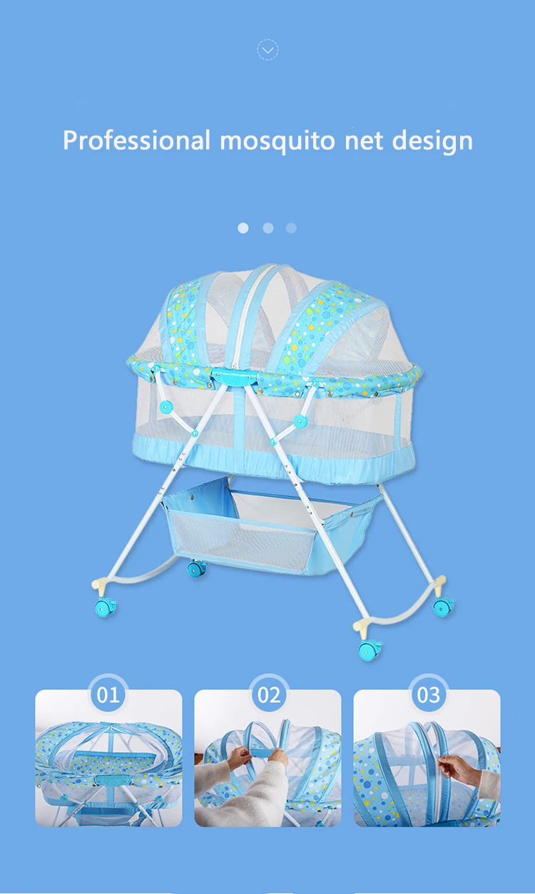 Function:wheels+mosquito net+foldable+portable