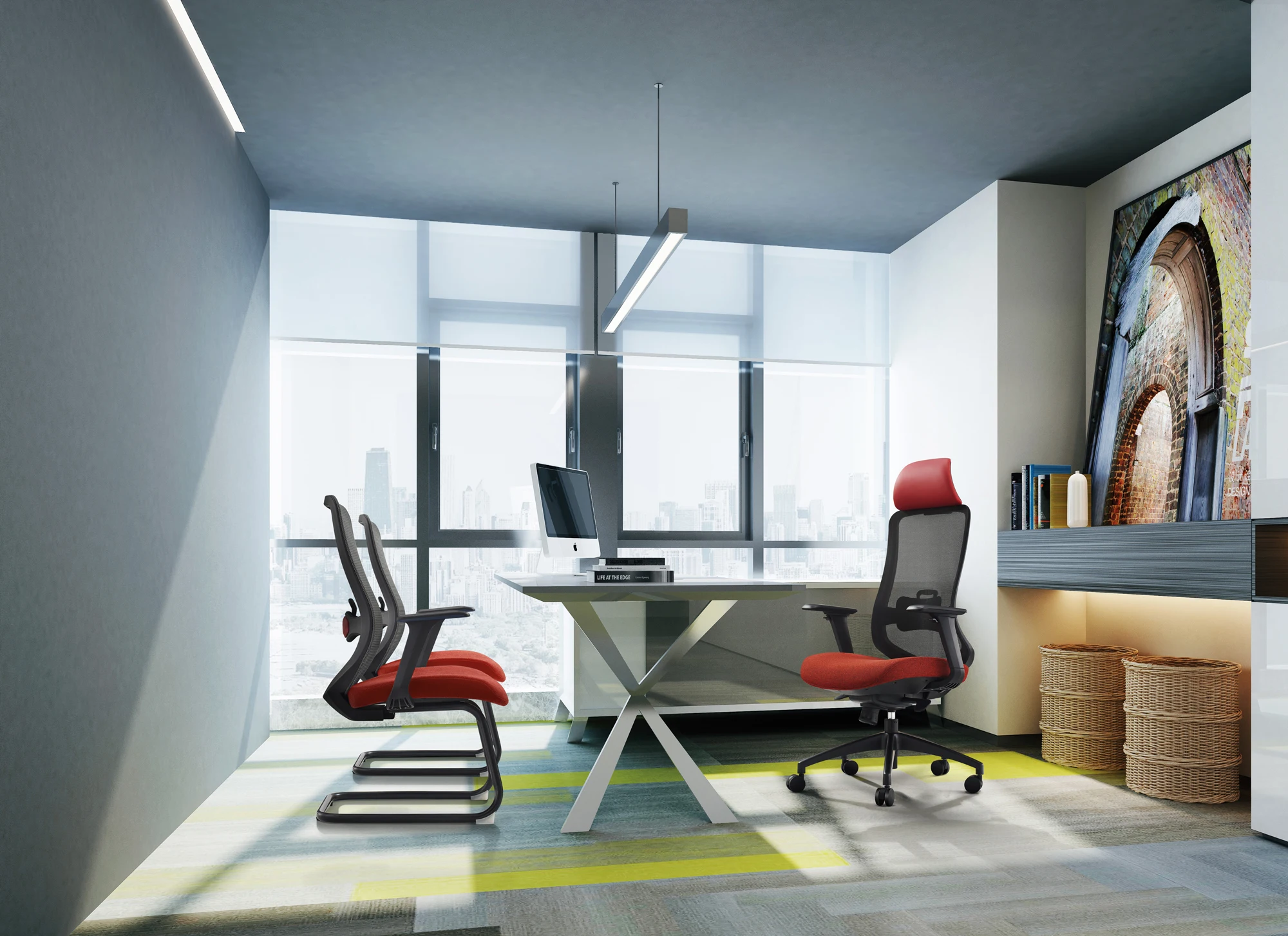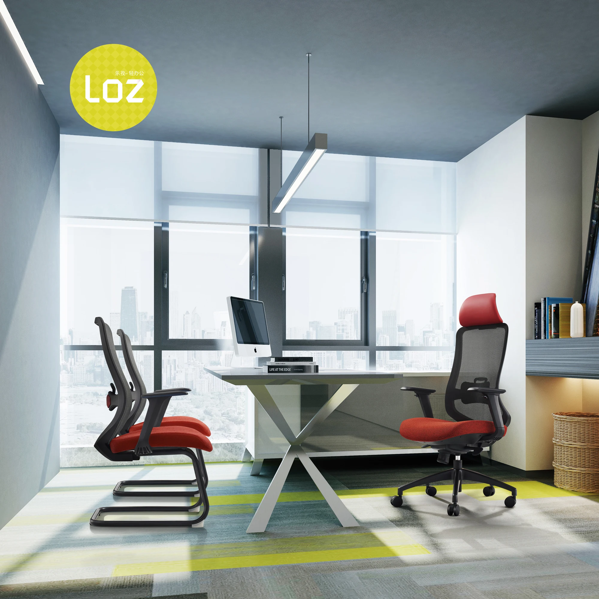 1.Butterfly functional mechanism 2.320MM Nylon base 3.Mould foam 4.Back:mesh,Seat:elastic cloth 5.100MM Gas lift 6.50MM PU casters