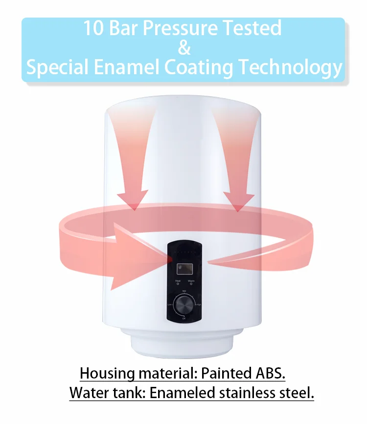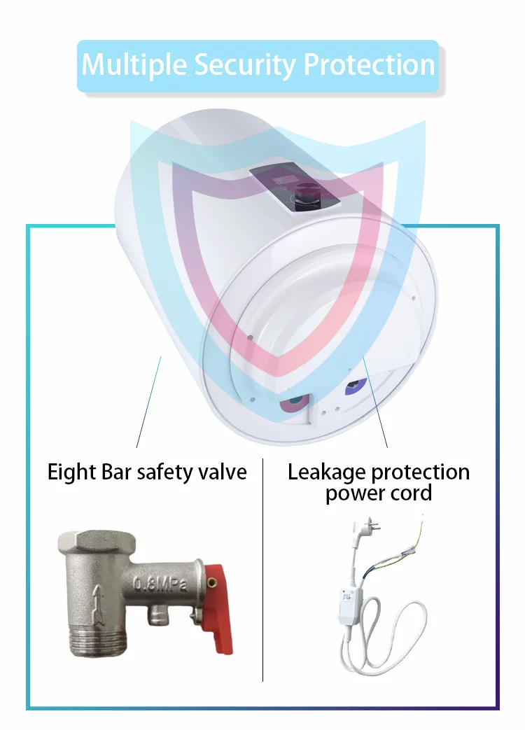 Safety | Earthing, Dry-heating Prevention, Anti over-pressure protection and safety valve |