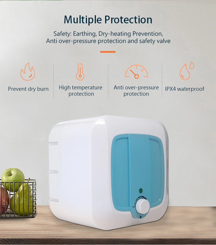 Safety | Earthing, Dry-heating Prevention, Anti over-pressure protection and safety valve |
