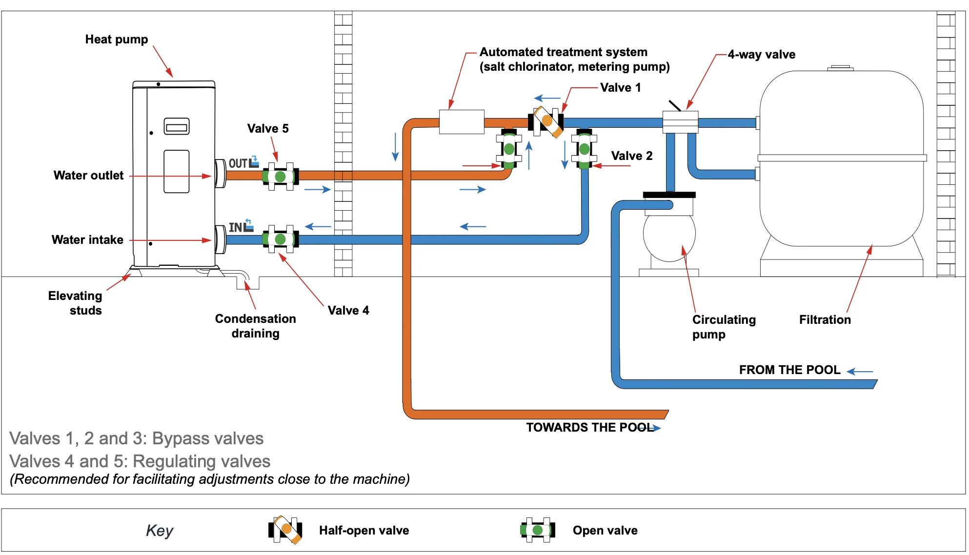 Installation layout for Sunrain R32 DC inverter swimming pool heat pumps