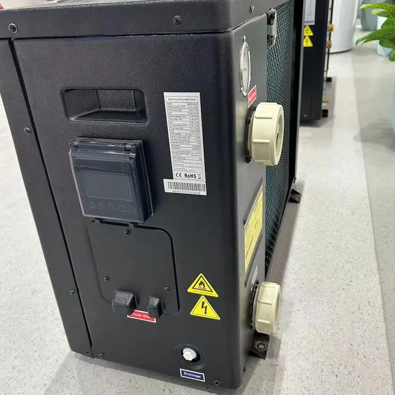 Sunrain R32 DC inverter pool heat pump is available in three colors: black, white, and gray.