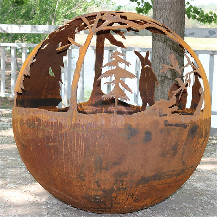 Corten Sphere Globe Fire Pits Fire Ball Sphere Bowl for Outdoor