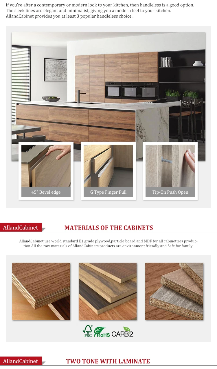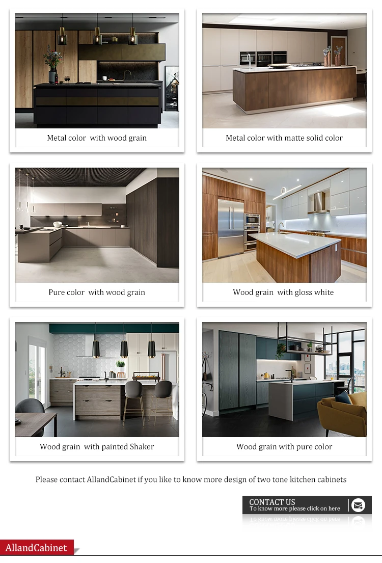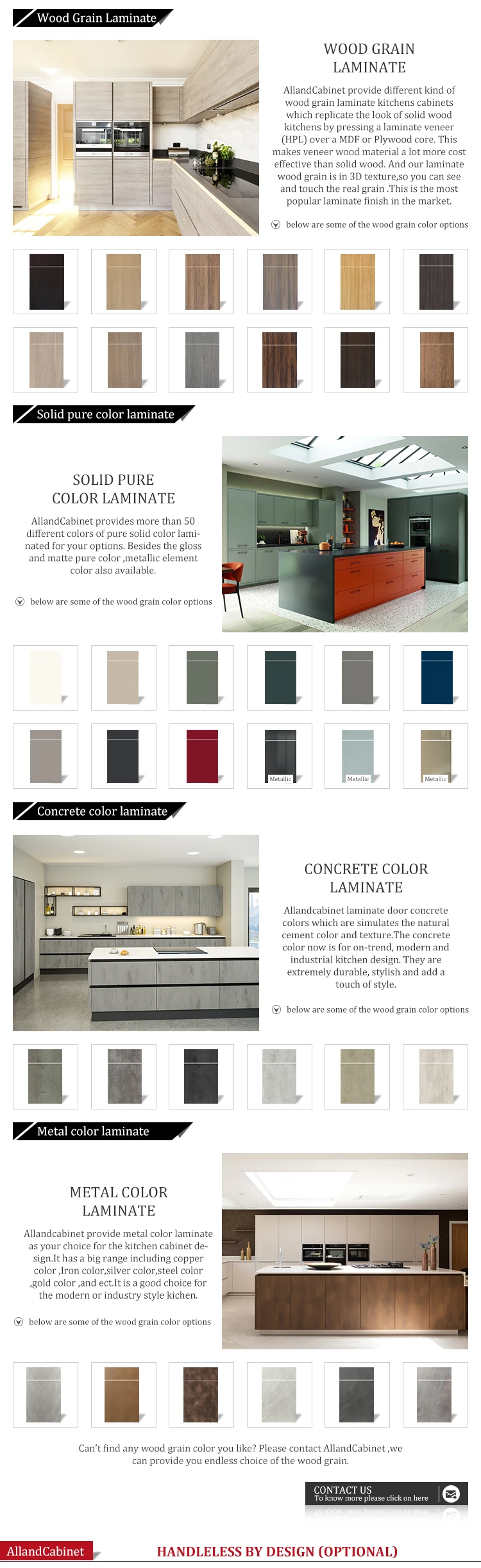 AllandCabinet laminate finish kitchen cabinet has a big range of color and design for your choice.