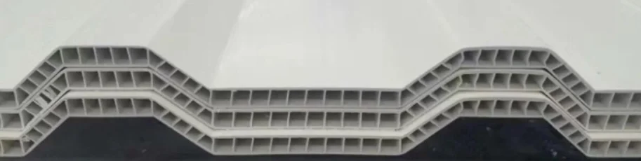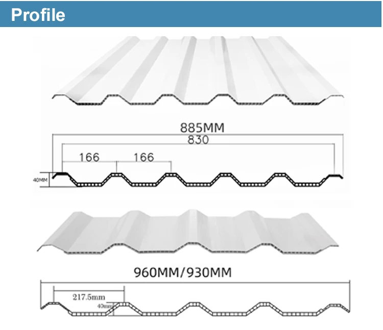 This twin wall hollow roofing sheet is mainly used in large-scale factories, brick factories, warehouses, wholesale farmers' markets, etc. Particularly suitable for farming, old factory buildings and warehouses remodeling and others.