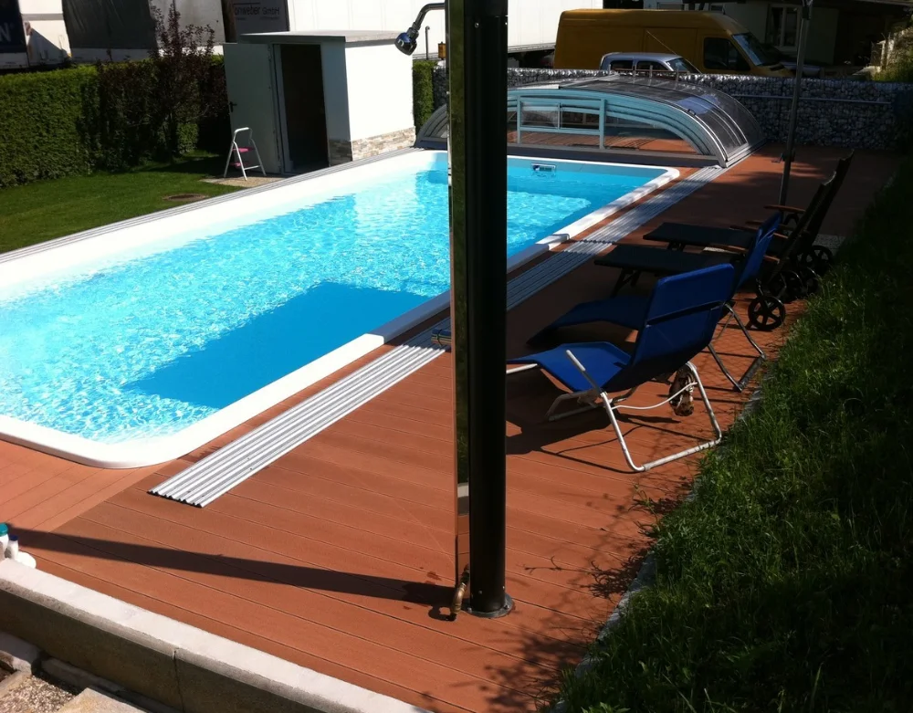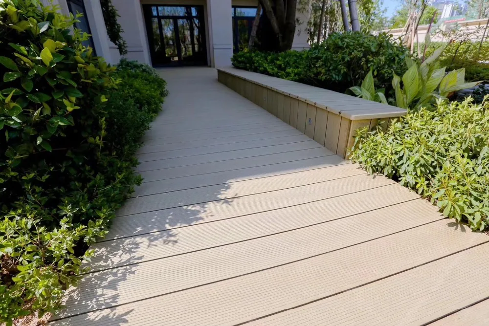 YI-Color WPC capped composite decking has an advanced tough plastic shield encasing all four sides around its inner WPC core. The protective outer shield layer is highly stain, mildew, scratch and fade resistant. Compare to traditional composite decking, the capped composite decking is more durable, more attractive, more fade and scratch resistant, more beautiful and more reliable.